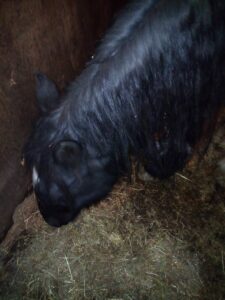 Now while I am being photographed like a fashion model, Kimberly’s boys, Beowulf (isn’t that a lovely name) and Huw (I wonder if that is short for Cúchulainn?), set about tearing a stable for me – emptying out jump wings, and tools, and wood. Kimberly was shouting at them to hurry as weather was going to give me a bath before morning if they didn’t hurry. It look less than a turn in the field and I had a warm, clean bed to call me own. I had a lovely pile of hay and peace and quiet.