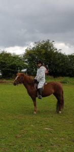 She participates doing In-Hand Classes and is part of Anita Nancollas’s Horse Angels. She is busy teaching young riders how to safely ride, hack out and jump. She can do Dressage and will do Cross Country (as long as it is low).